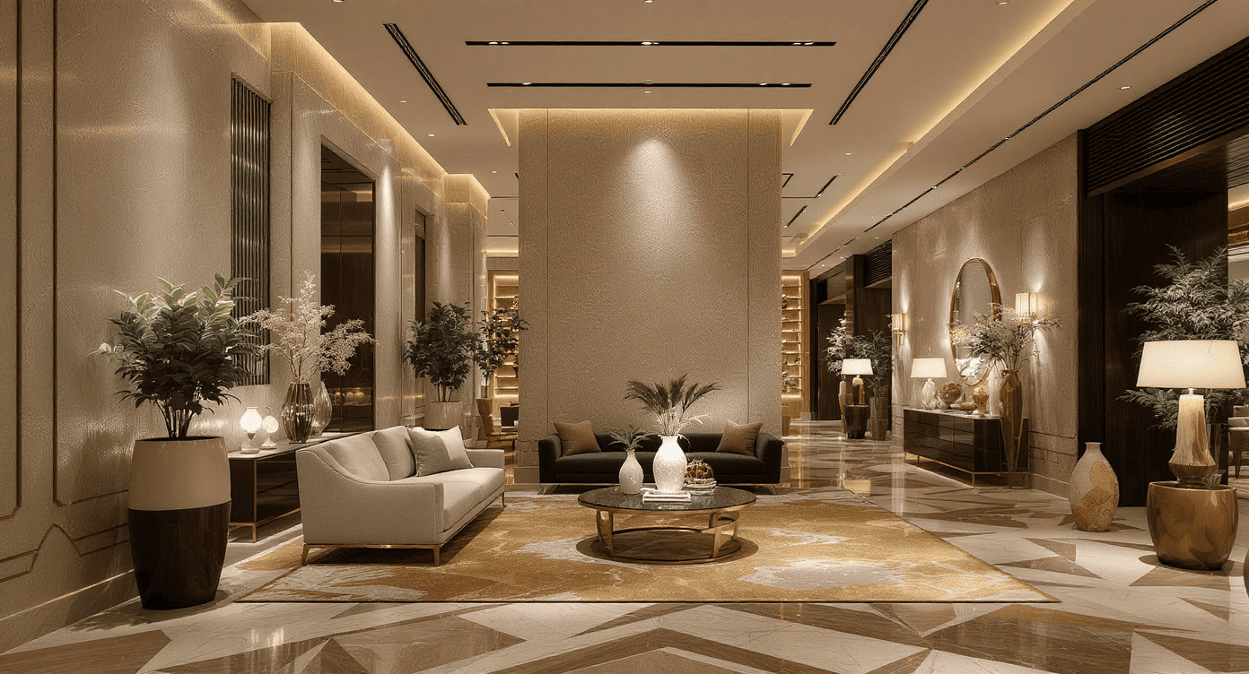 Transform your interiors from the ground up with our complete Wall-to-Wall Flooring Solutions and designer finishes. Our wall-to-wall offerings feature stain-resistant fabrics, excellent sound absorption, and easy-to-maintain materials—perfect for high-traffic and hospitality spaces. Elevate your décor with our Designer Area Rugs, crafted from luxury materials and available in custom patterns that align with your brand identity or personal taste. For a seamless and stylish look, explore our range of other flooring solutions, including elegant wooden flooring, durable laminate options, and versatile vinyl flooring. Whether you're designing a cozy home or a high-end commercial space, we have the right flooring to match your needs.